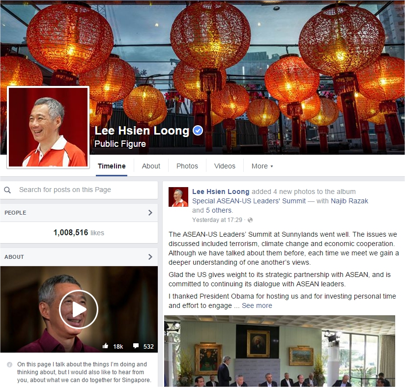 PM Lee Hsien Loong's Facebook hits 1 million likes