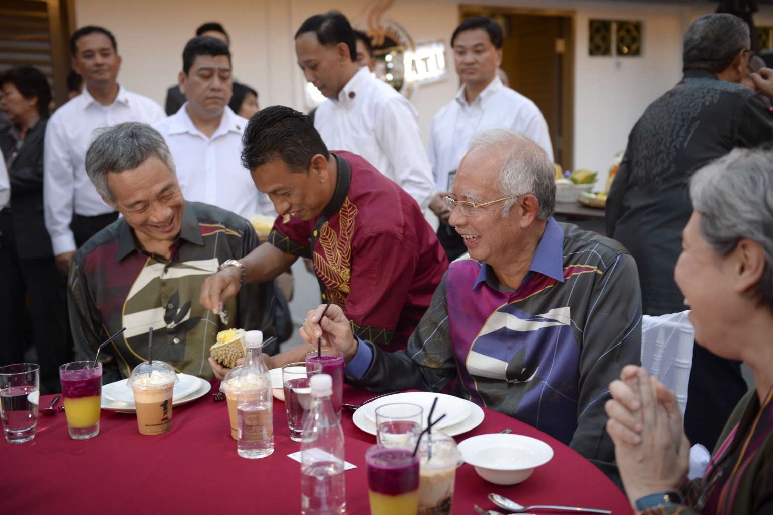 Prime Minister Lee Hsien Loong and his Malaysian counterpart Najib Razak being served top-grade Mao Shan Wang durian at the official opening of the Agrobazaar Malaysia in August last year. As Singapore and Malaysia mark 50 years of bilateral ties, the two leaders wrote of the history, geography and kinship the countries share.
