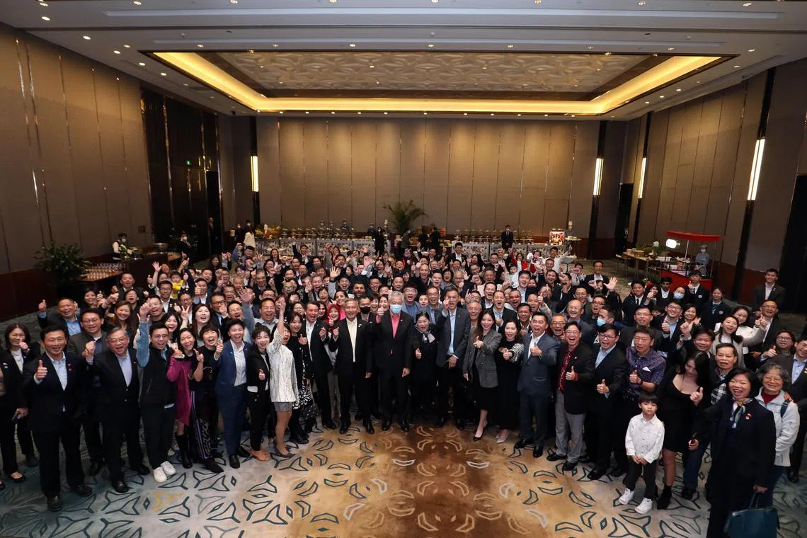 PM Lee taking a group photo with Singaporeans who live in Guangdong, during a reception on March 27, 2023.