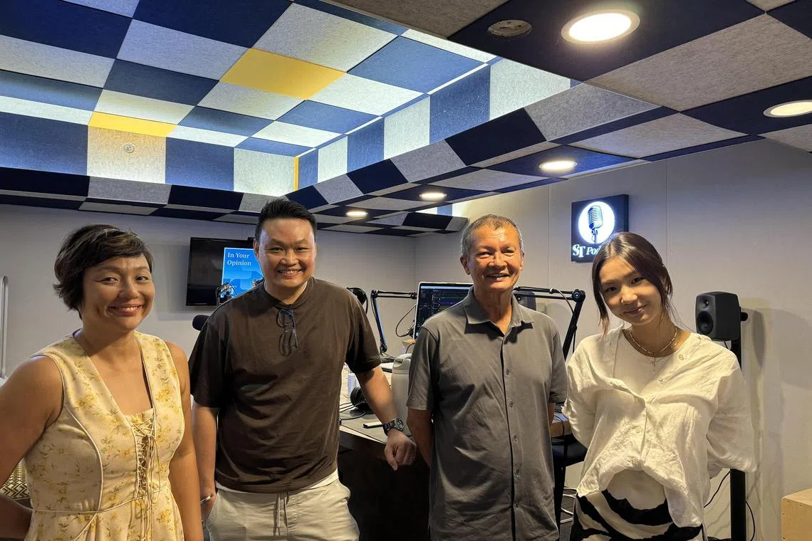 (From left) ST assistant podcast editor Lynda Hong, Dennis Quah, head of the Harley Davidson Owners’ Group, Aman Aljunied is an experienced instructor and STNow reporter Christie Chiu in the podcast studio.
