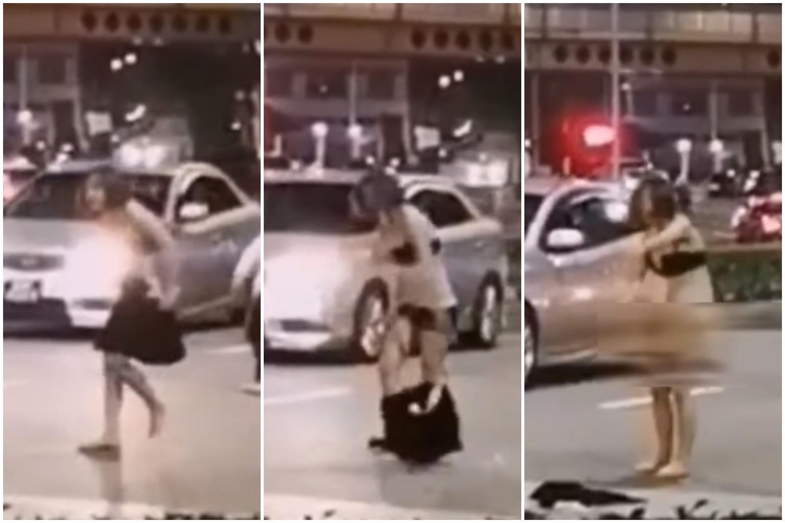 In a video circulating online, a woman is seen chasing after a man wearing a red T-shirt, before tearing off her dress and her panties while shouting and pointing at the retreating man.