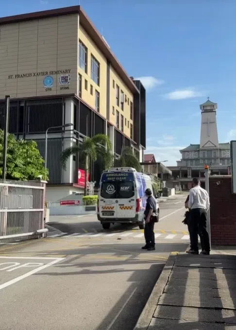 An ambulance entering the church premises on Dec 21. The police said that officers were at the scene attending to the incident.