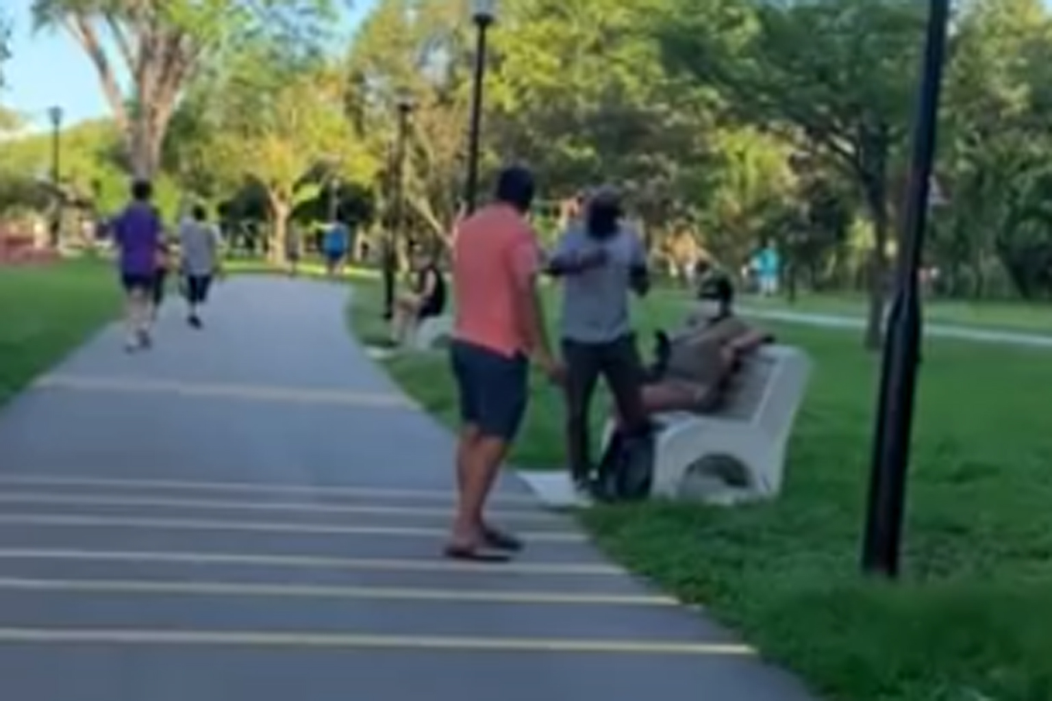 The first man, who appeared to be agitated, also said that the latter was breaking the law by not wearing a mask, although the man responded that he had been drinking water.