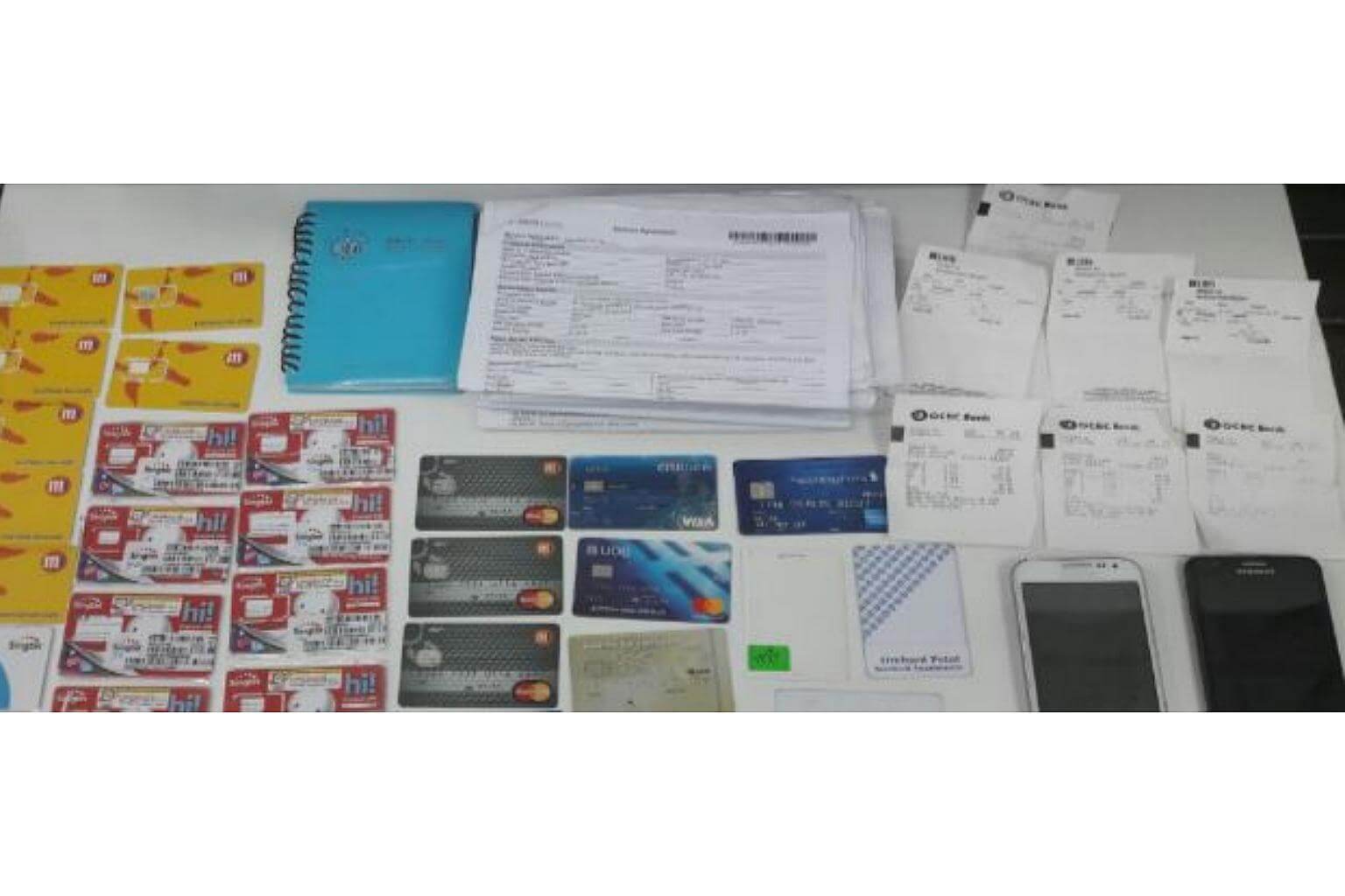 They seized paraphernalia such as SIM cards, ATM cards, credit cards, bank transaction slips, two handphones and notebooks.