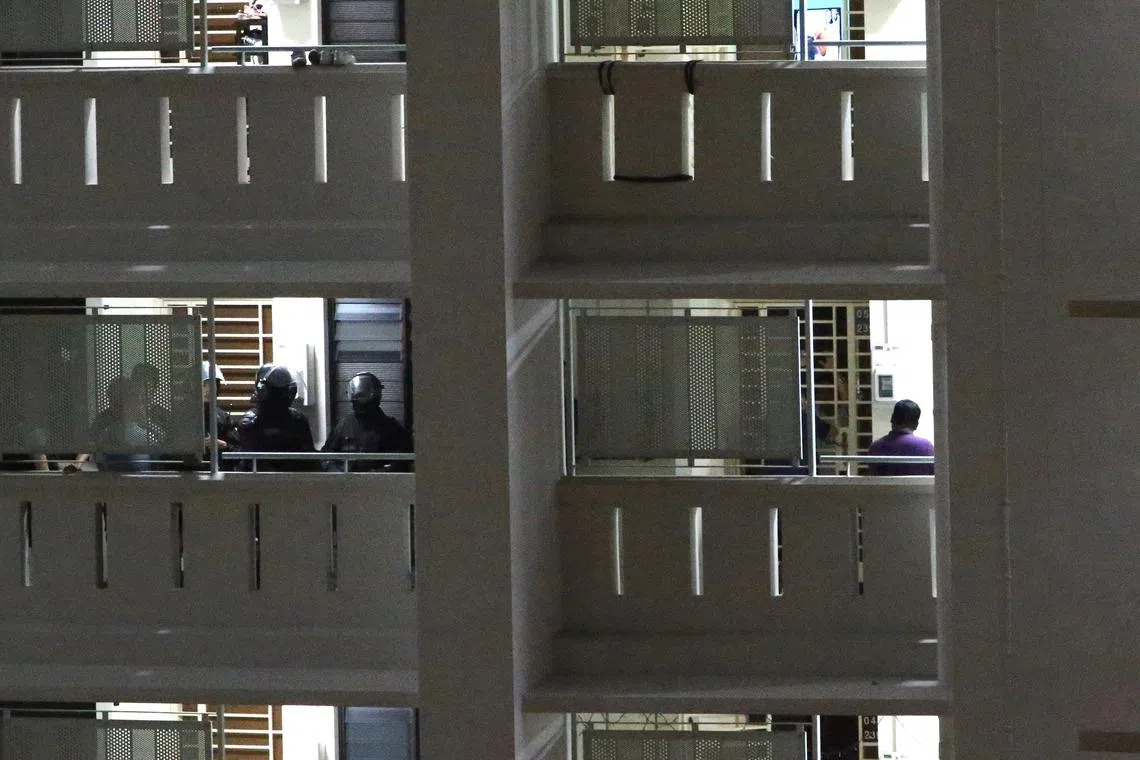 A file photo from Sept 28, 2016, shows police negotiating with a 39-year-old man at the gate of a Sembawang unit at 4.15am.
