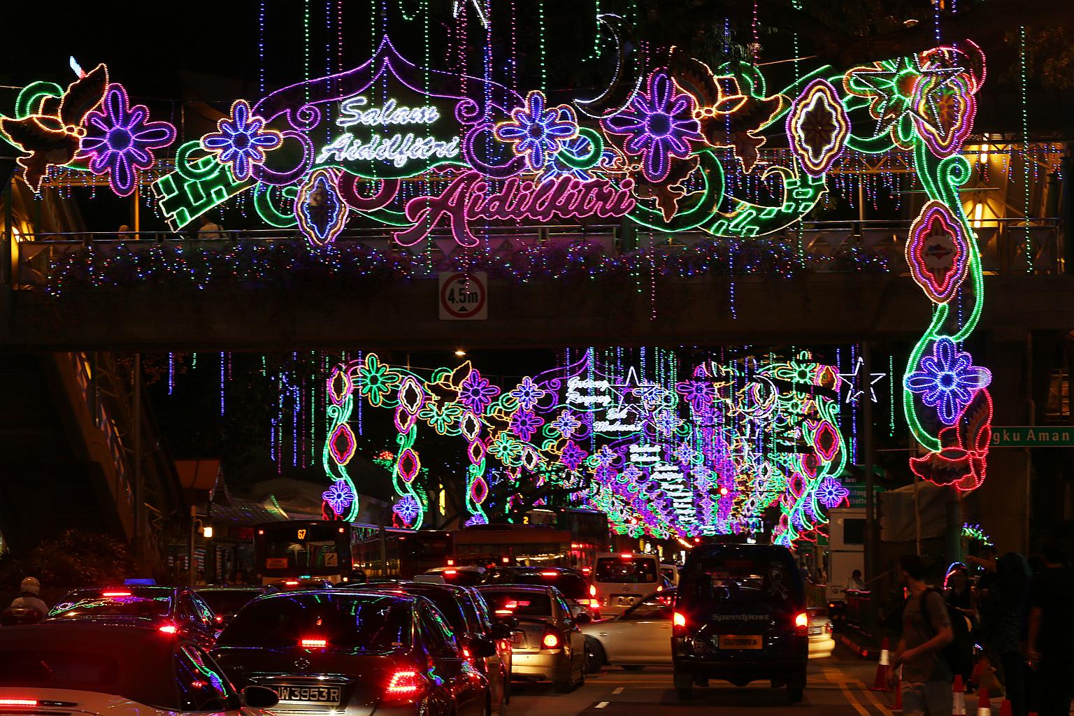 Festive decor and lights at Geylang Serai for Hari Raya 2016.