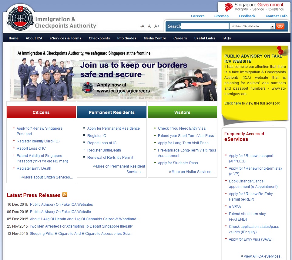 It is advising the public to exercise caution and to use only the official ICA website at www.ica.gov.sg for all informational and transactional needs concerning ICA matters.