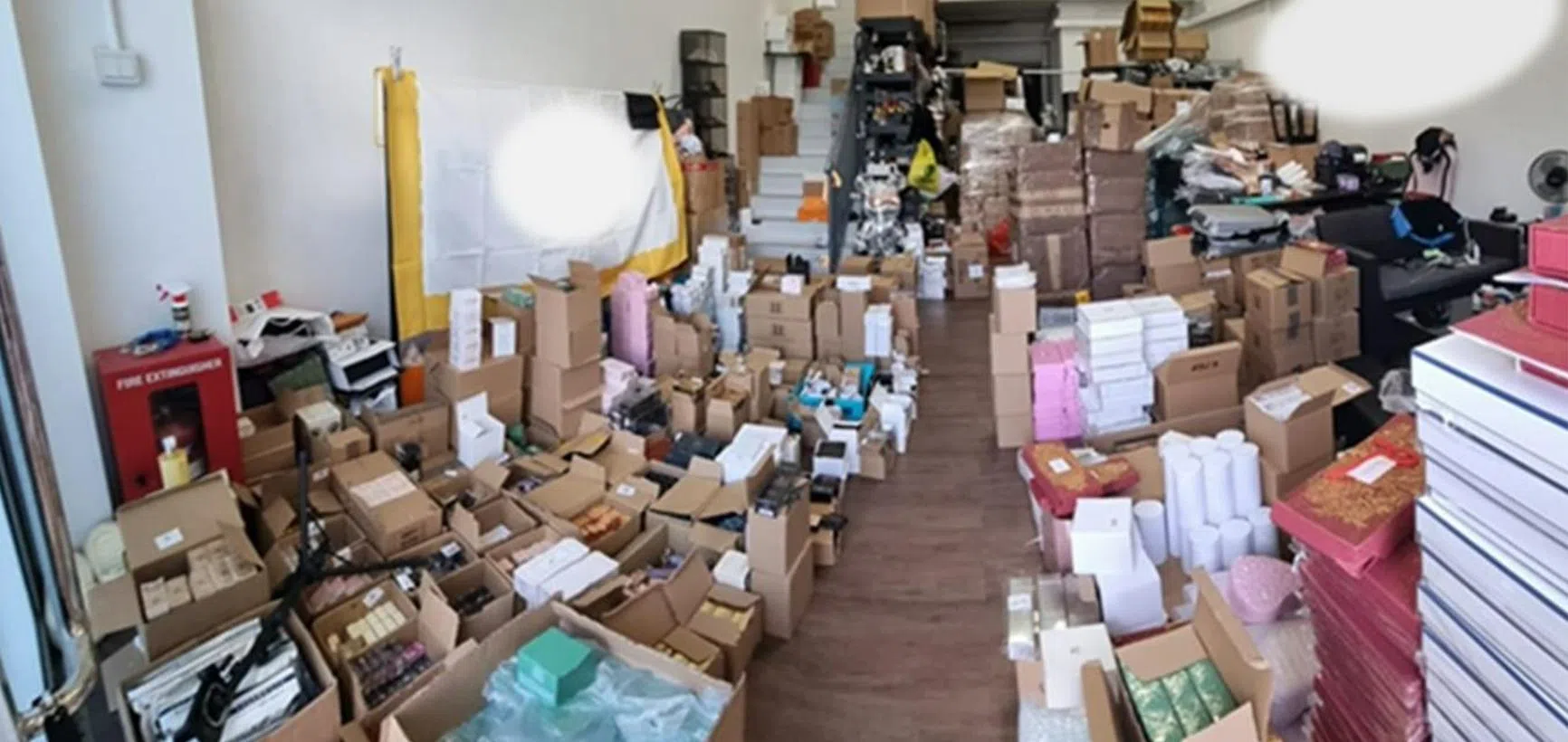 More than 13,000 items, with an estimated street value of more than $490,000, were seized. These included bottles of perfume, cosmetics, and household items that appeared to be trademark-infringing.