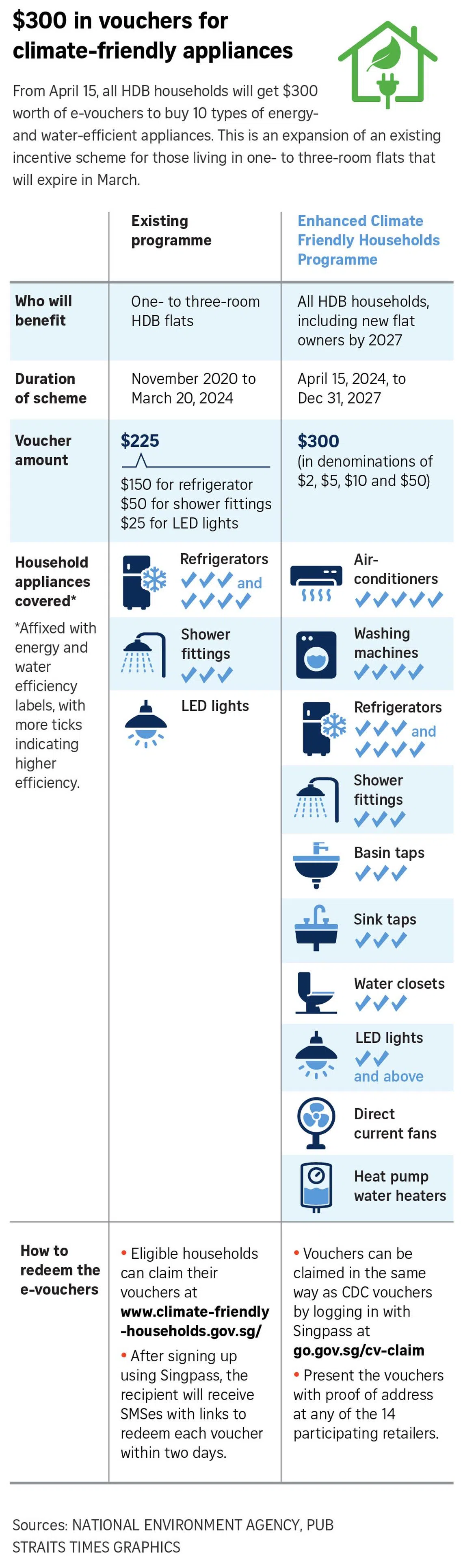 $300 vouchers for all HDB households to buy energy- and water-saving products