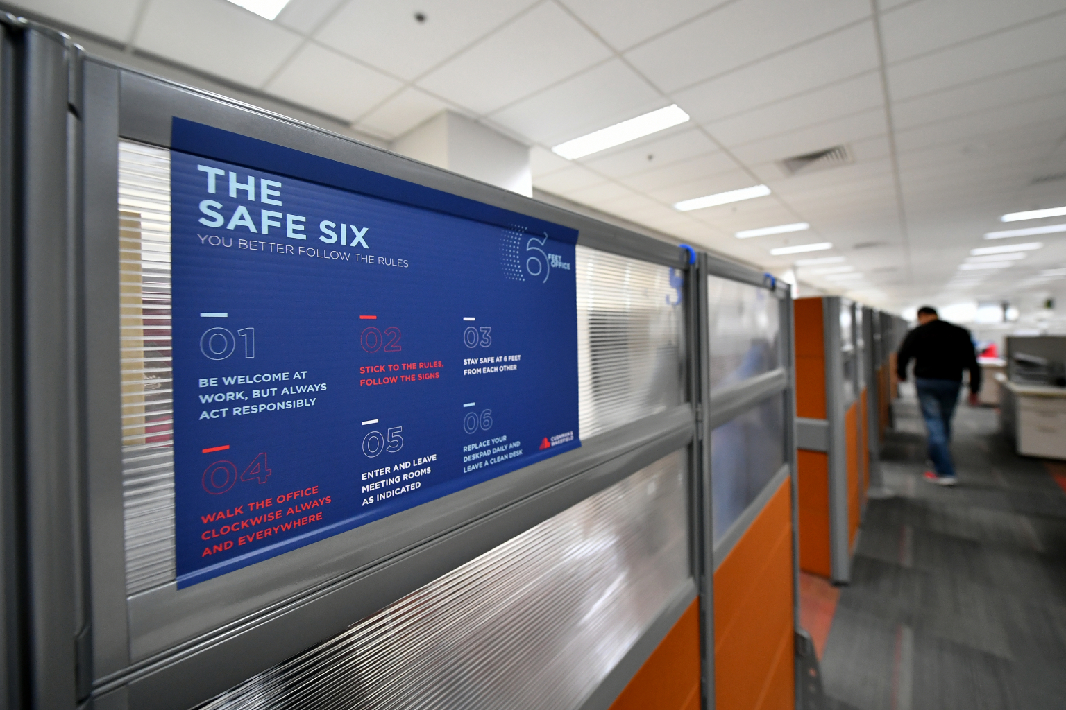 “The safe six” posters, which state the rules to follow, are pasted everywhere around the office of C&W Services, the facilities and engineering arm of commercial real estate services firm Cushman & Wakefield.
