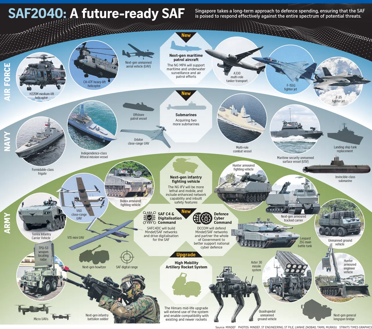 These hardware upgrades are part of the Singapore Armed Forces’ (SAF) plan for a military that is fit for Singapore’s security purposes, especially amid a fast-changing global order, said Defence Minister Ng Eng Hen on March 3 during the debate on the Ministry of Defence’s (Mindef) budget.