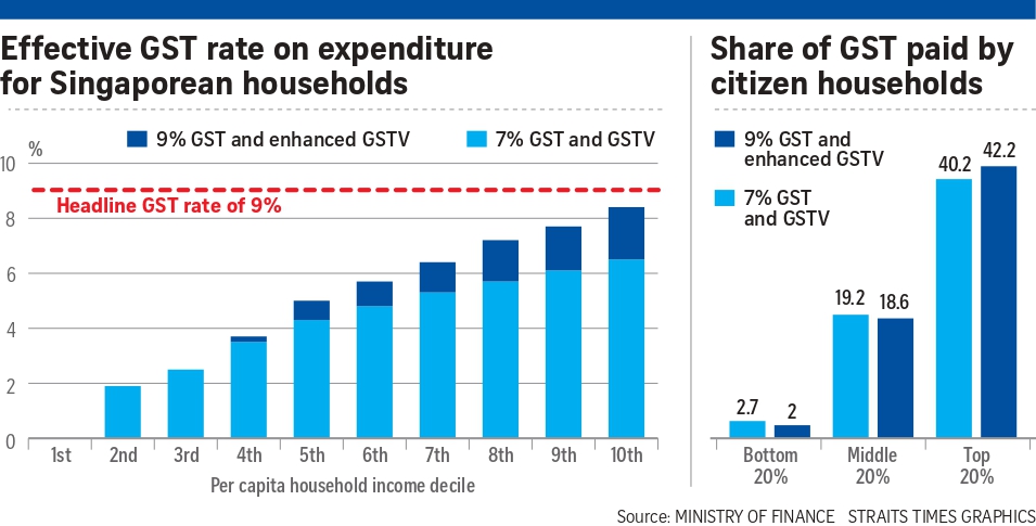 Mr Wong said that is not so, as after the GST rate increase, it is the top 20 per cent of citizen households who pay a greater share of GST, after accounting for GST Vouchers and absorbed GST.