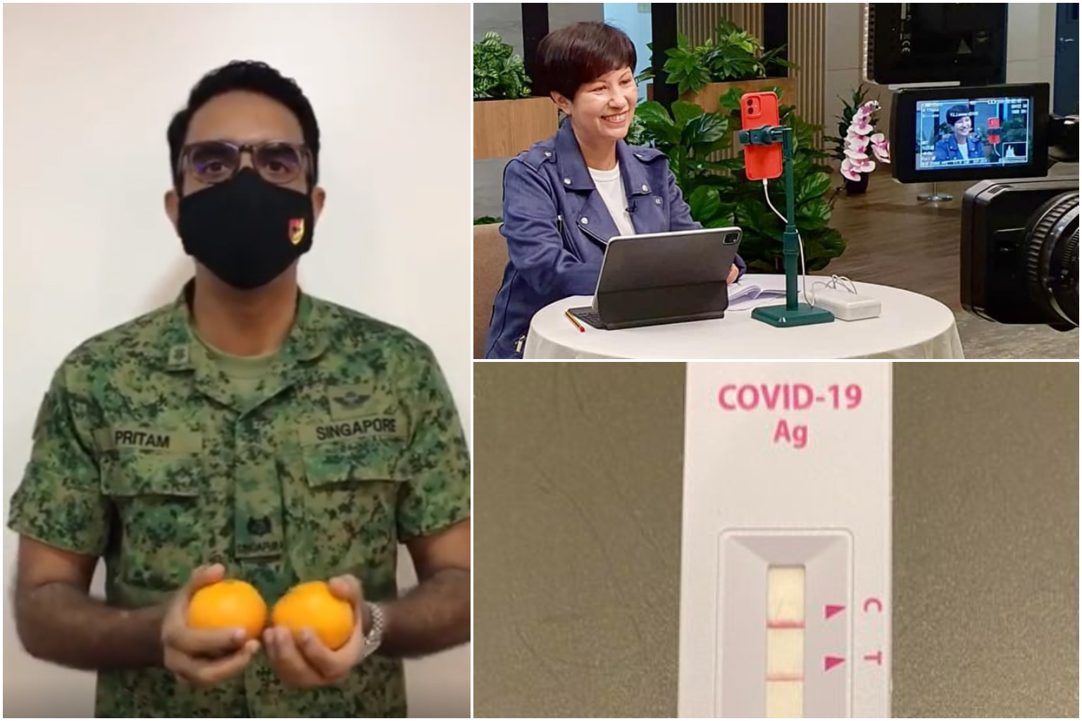 Meanwhile, Workers' Party (WP) MPs and members "passed" oranges to one another virtually, while wishing viewers a merry festive season. Among them were former WP chief Low Thia Khiang, clad in maroon, who wished everyone a happy new year in Teochew.