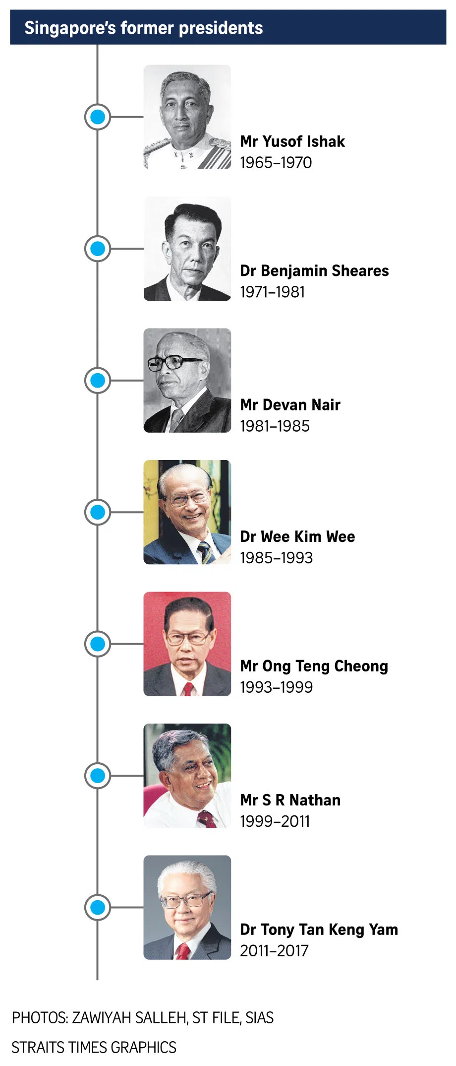 Singapore held its first presidential election in 1993. There have been four elected presidents – Mr Ong Teng Cheong, Mr S R Nathan, Dr Tony Tan Keng Yam and the incumbent, President Halimah Yacob.