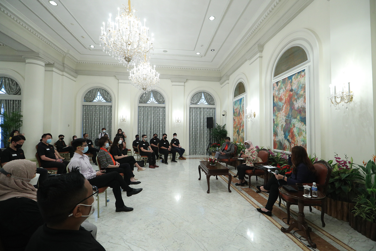 President Halimah Yacob hosted a Dialogue with Young NTUC Union Leaders at the Istana, 31 March 2022.