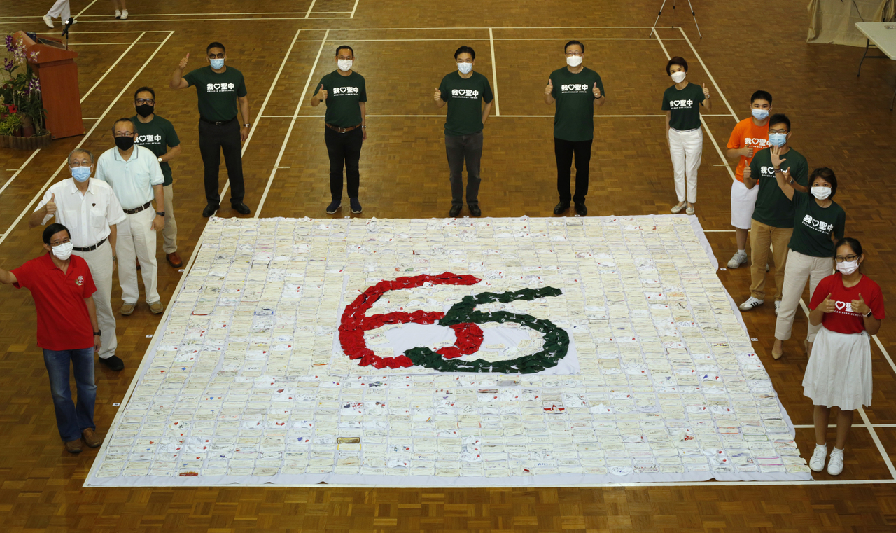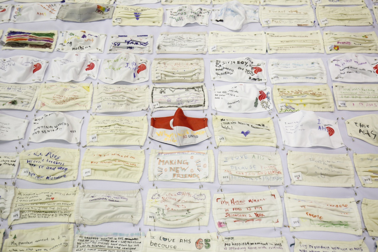 The masks were assembled into a tapestry that has been entered into the Singapore Book of Records as the largest montage made with face masks, in keeping with the school's tradition of breaking records at its major anniversary celebrations.