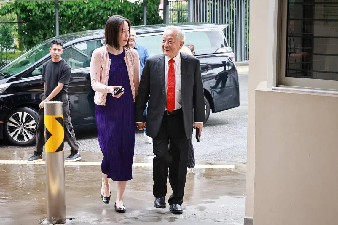 Mr Ng Kok Song, 75, accompanied by his fiancee Sybil Lau, 45, at the Elections Department on July 19, 2023.