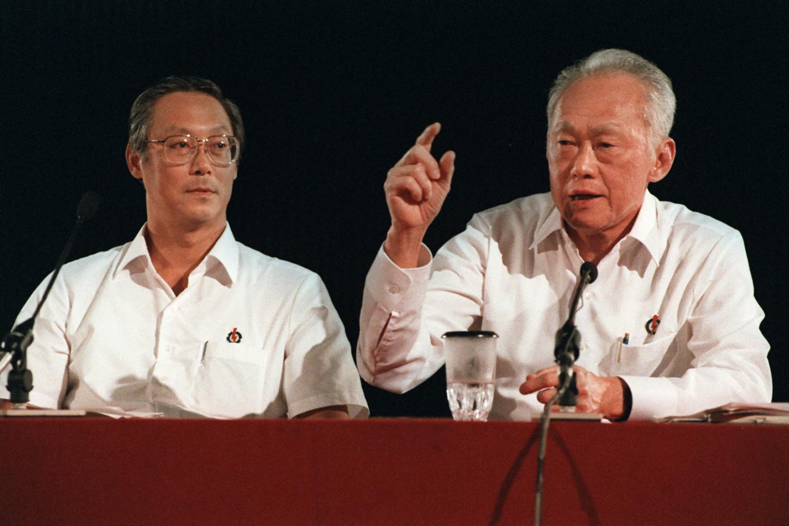 Mr Lee Kuan Yew (right) and Mr Goh Chok Tong at a post-General Election press conference on Sept 3, 1988.