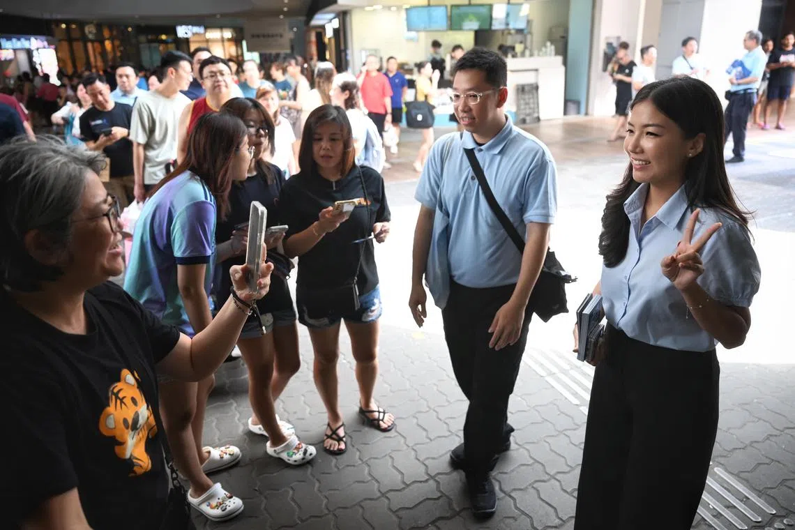 At around noon, WP’s Punggol GRC candidates Harpreet Singh, Alia Mattar, Alexis Dang and Jackson Au were spotted handing out fliers outside Waterway Point shopping mall. Long queues formed as people wanted to take photos with the candidates.