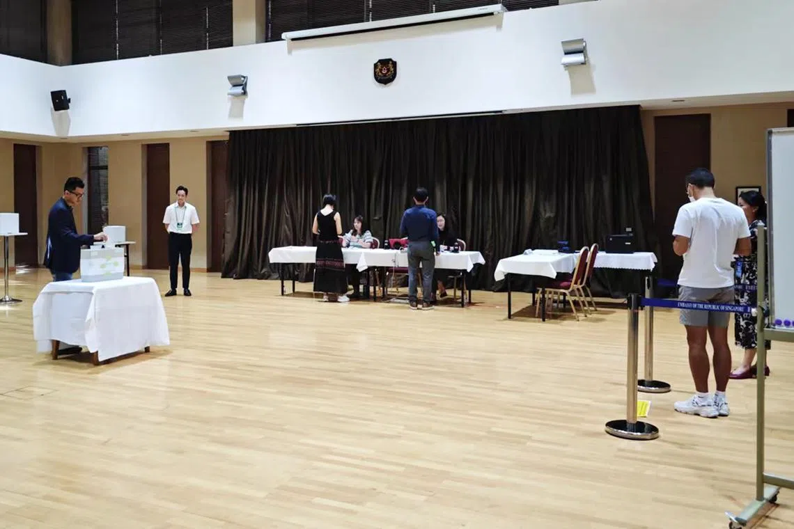 Voters at a polling station set up at the Singapore Embassy in Beijing on Sept 1.