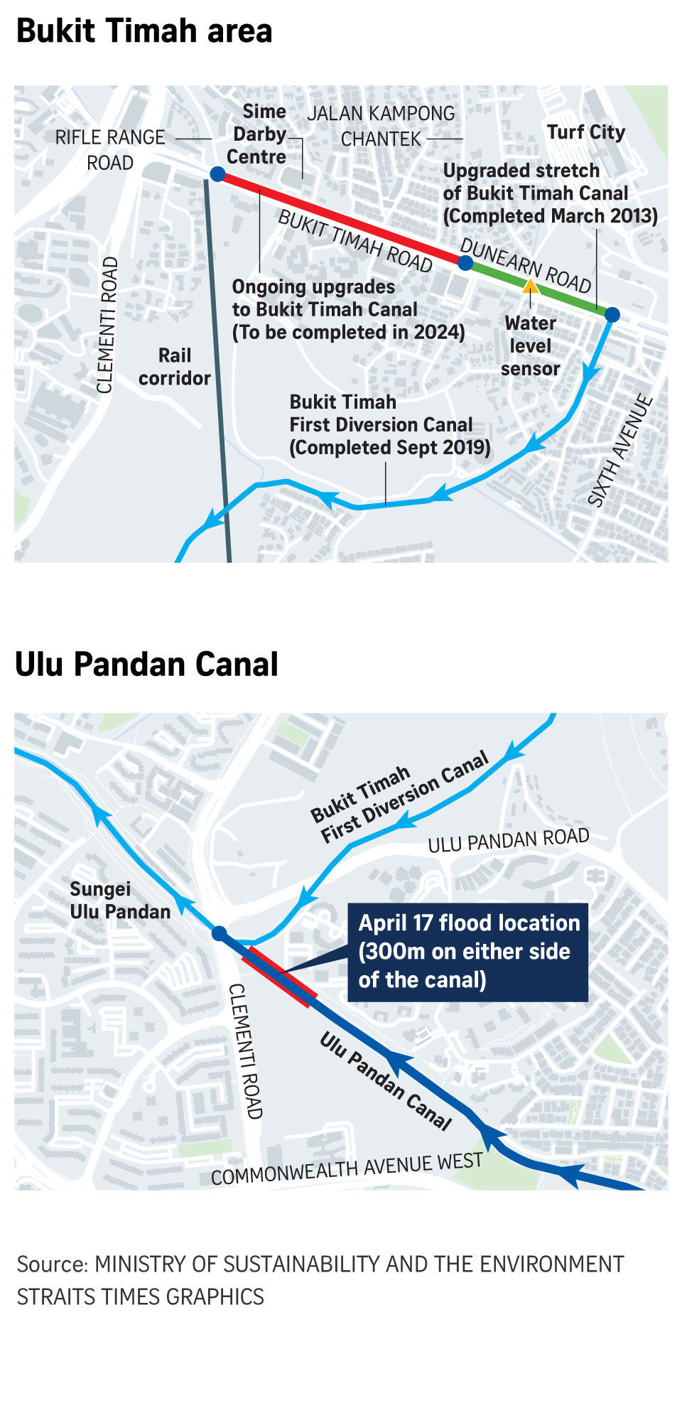 Flash floods occurred in two areas - in Bukit Timah and Dunearn roads, and at the Ulu Pandan Canal - on April 17.
