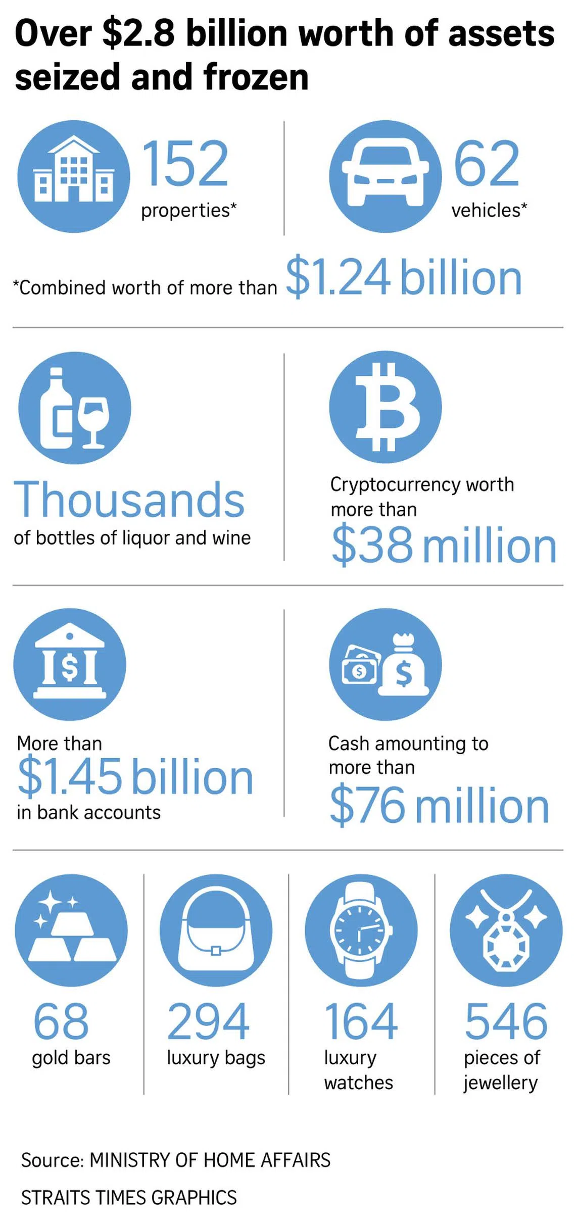 Following islandwide raids on Aug 15, assets seized or issued with prohibition of disposal orders are now worth more than $2.8 billion.