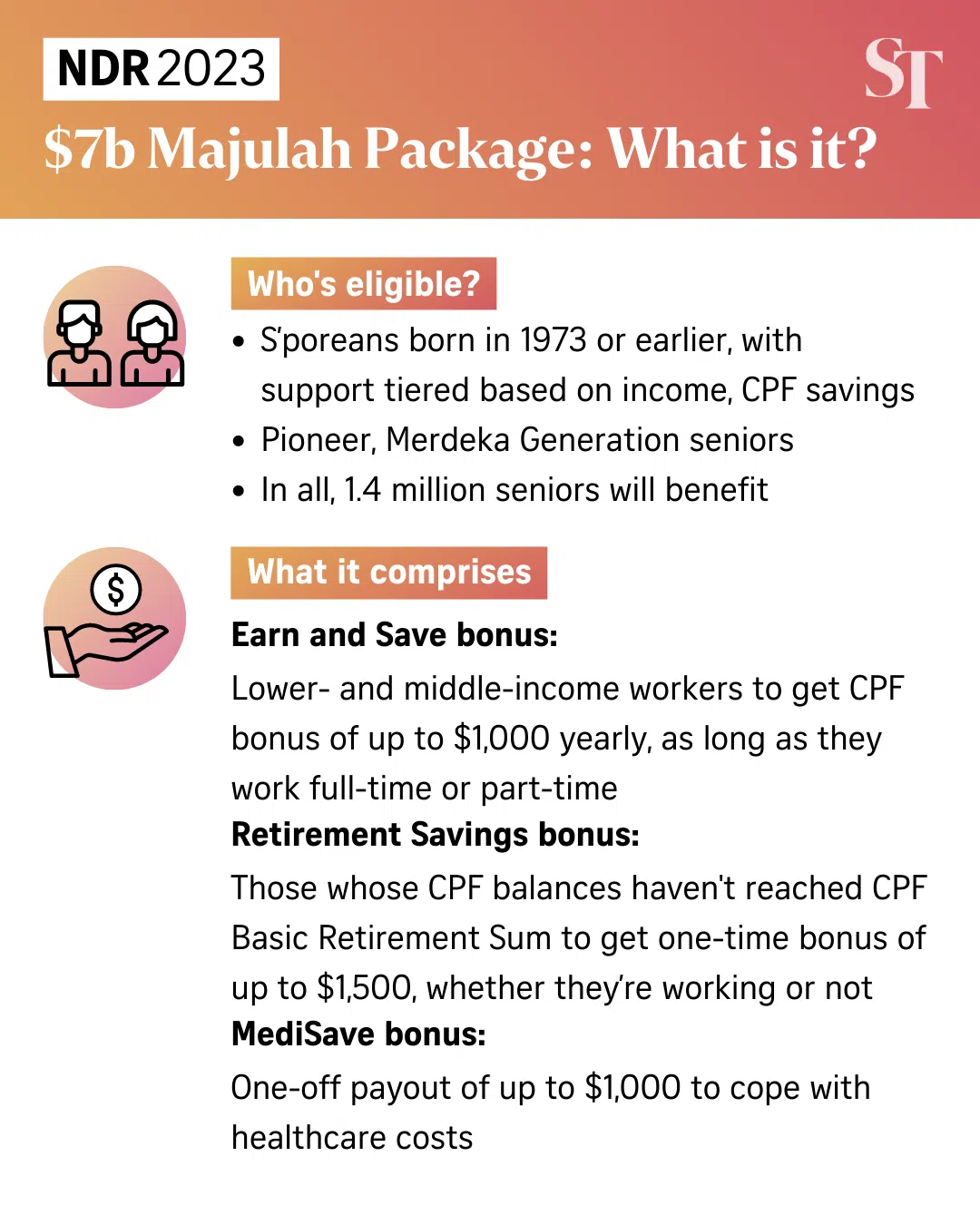 Targeted at those born in 1973 or earlier, the three-part Majulah Package will cost the Government about $7 billion and it will benefit those with lower incomes and less wealth.