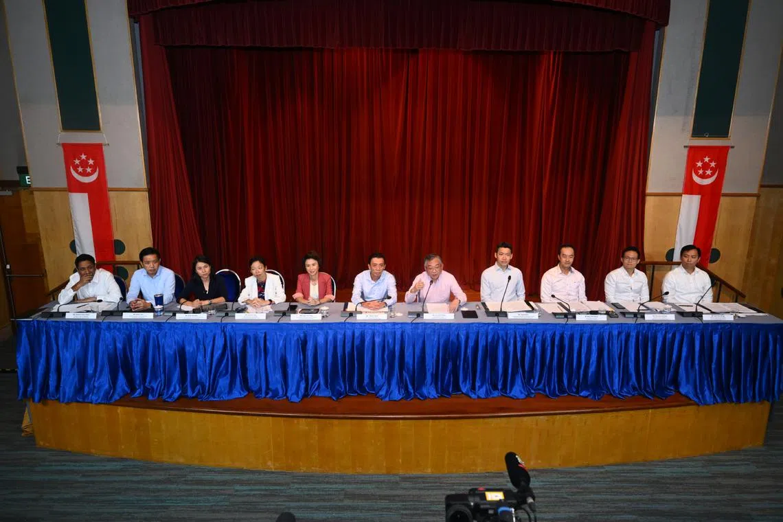 (From left) Minister of State for Manpower and Culture, Community and Youth Dinesh Vasu Dash; Minister of State for Trade and Industry and National Development Alvin Tan; Senior Parliamentary Secretary for Culture, Community and Youth, and Sustainability and the Environment Goh Hanyan; Minister of State for Education and Digital Development and Information Jasmin Lau; Senior Minister of State for Trade and Industry, and Culture, Community and Youth Low Yen Ling; Acting Minister for Transport Jeffrey Siow; Deputy Prime Minister Gan Kim Yong; Acting Minister for Culture, Community and Youth David Neo; Senior Minister of State for Manpower and Health Koh Poh Koon; Minister of State for Defence Desmond Choo; and Minister of State for Home Affairs and Social and Family Development Goh Pei Ming.