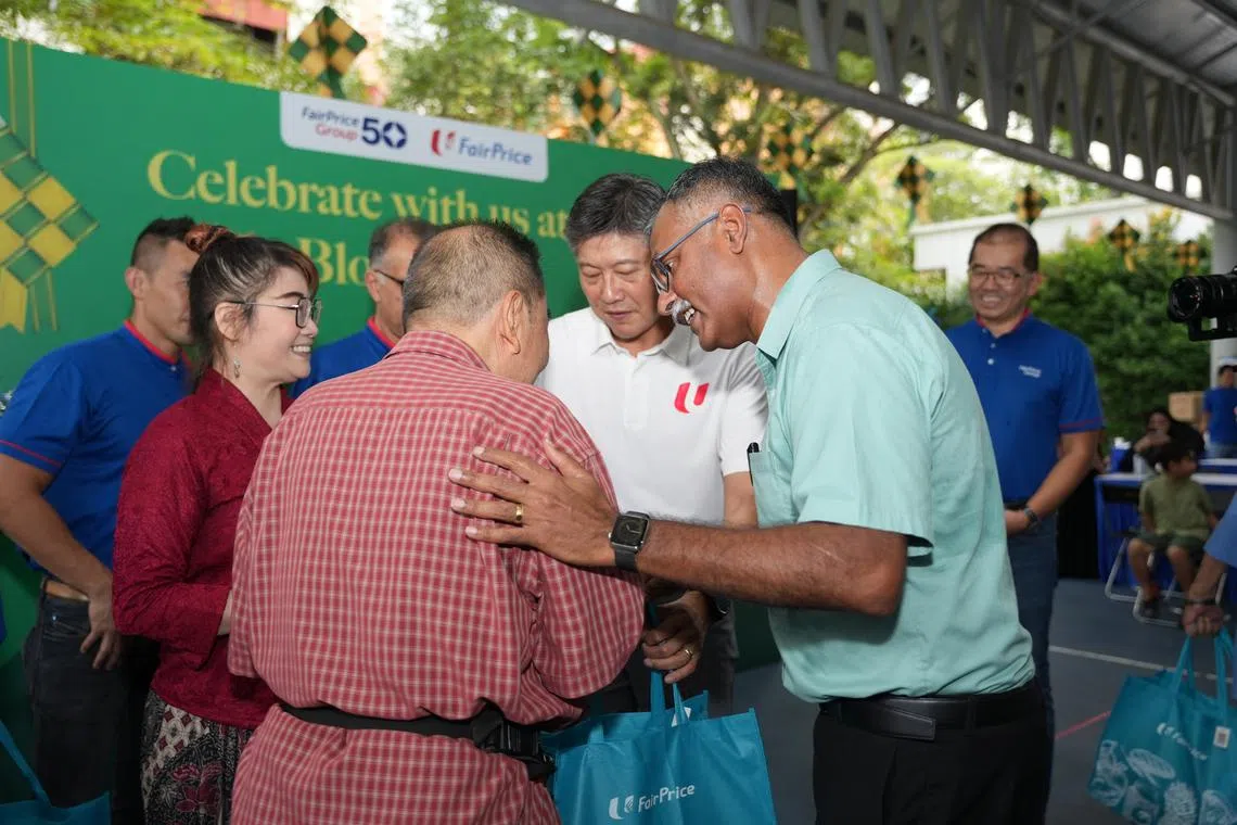 Bukit Batok MP Murali Pillai and labour chief Ng Chee Meng at a Hari Raya Aidilfitri event organised by the FairPrice Group in Bukit Batok on April 21.