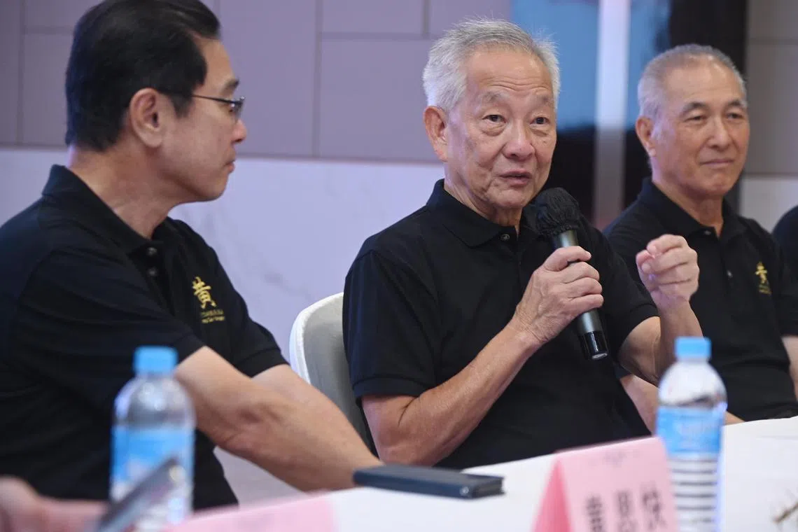 Mr Ng Kok Song (centre) at a dialogue at the Huang Clan Association on Aug 13, 2023.With him are the association’s emeritus adviser Ng Poh Wah (left) and its president Wong Kuek Phong.