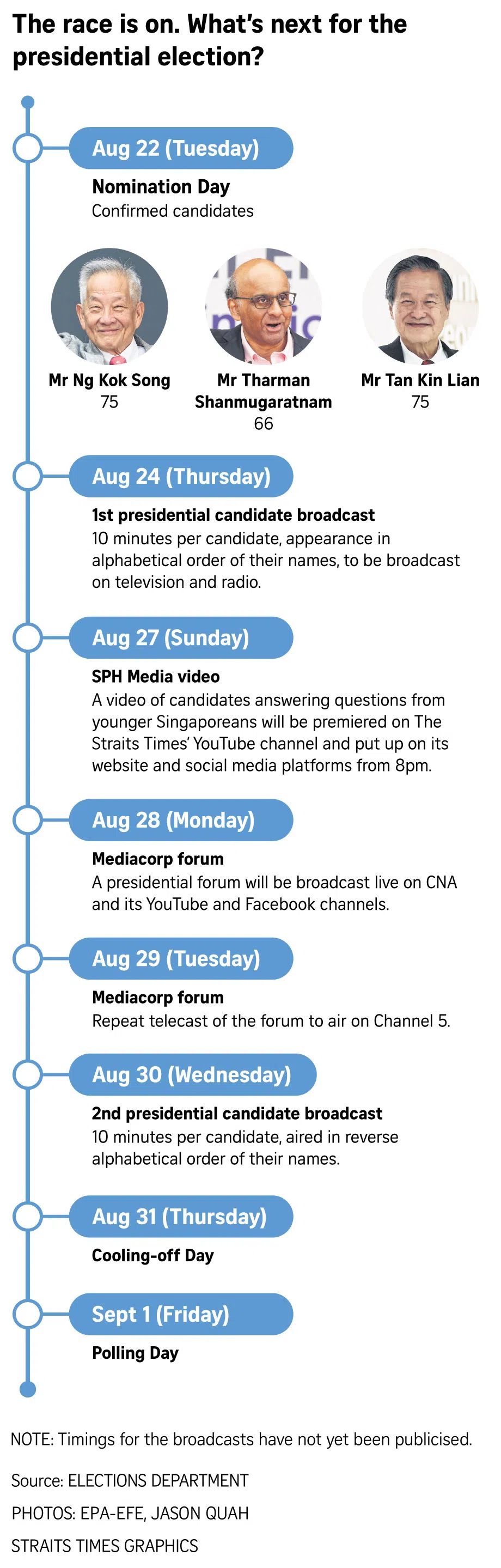 Campaigning ends on Aug 30, with Cooling-off Day on Aug 31 and Polling Day on Sept 1.