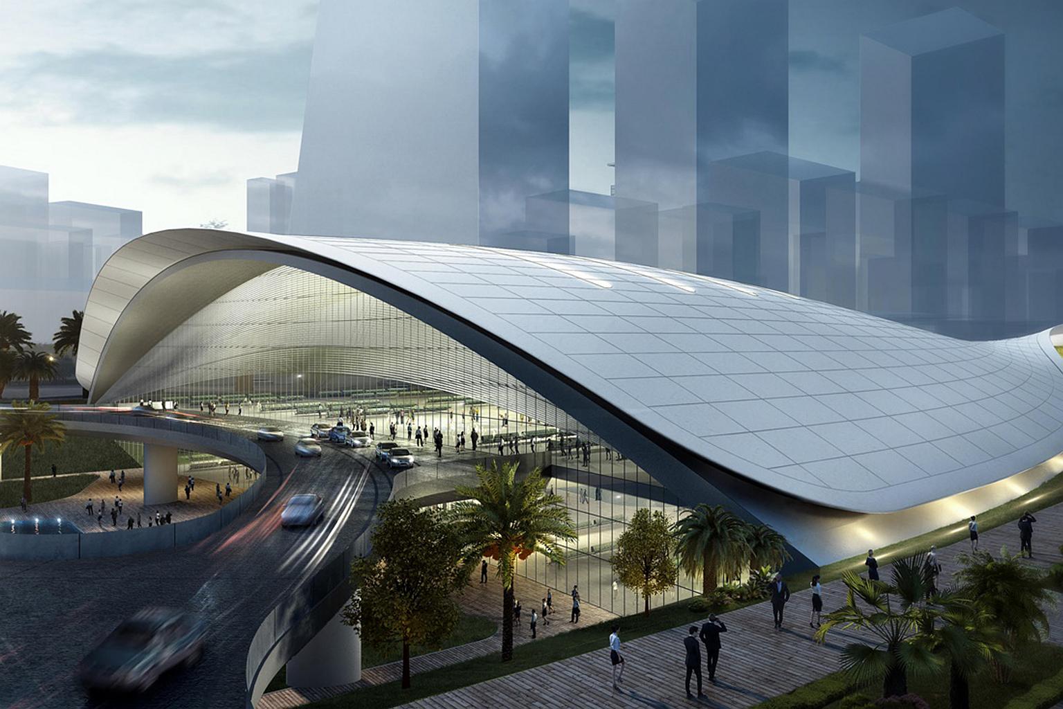 An artist's impression of the Jurong East station of the now terminated HSR project.