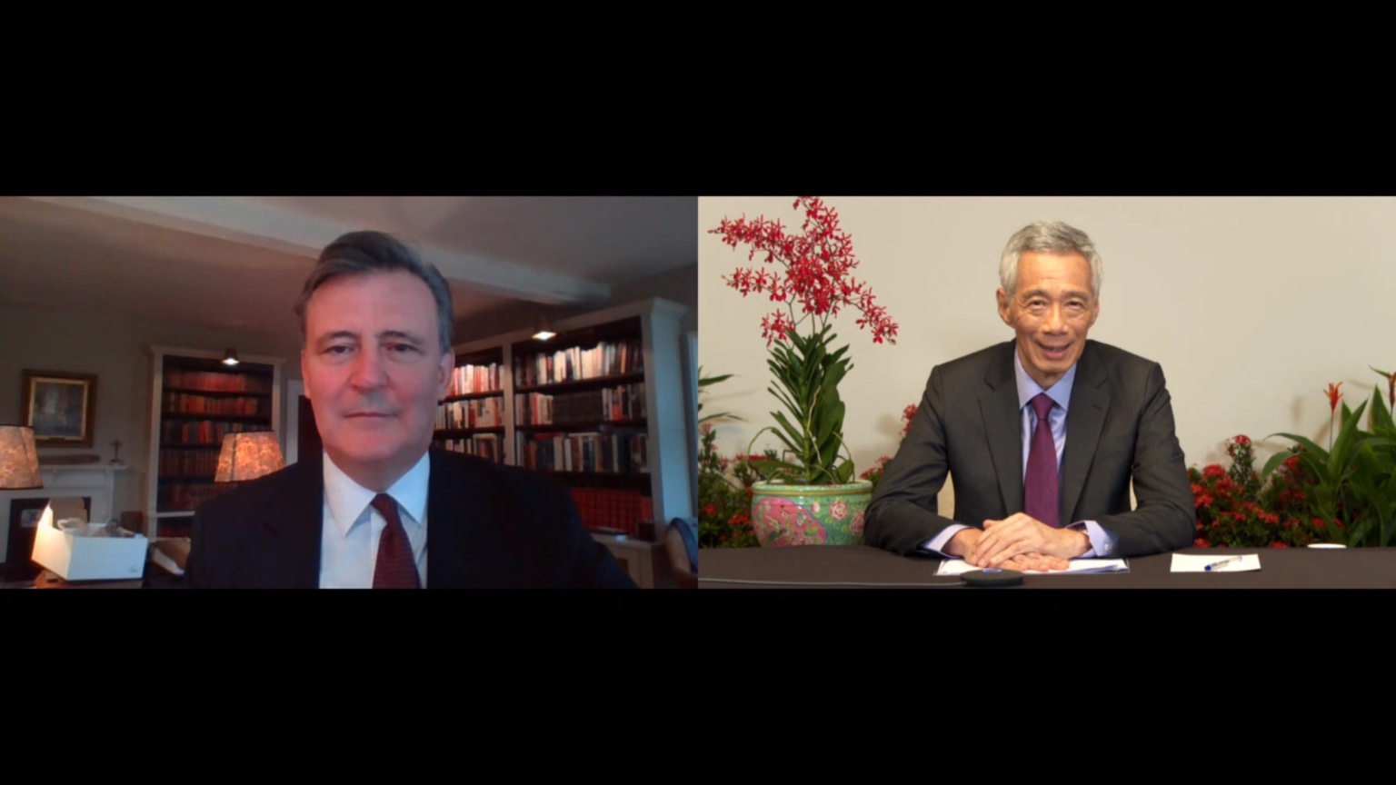 PM Lee Hsien Loong (right) speaks to Bloomberg News editor-in-chief John Micklethwait (left) in an interview which airs on Nov 17, 2020.