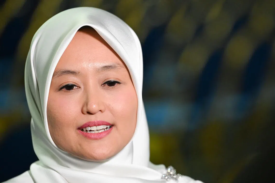 Minister of State for Health and Digital Development and Information Rahayu Mahzam speaking to the media at the PAP conference on Nov 24.