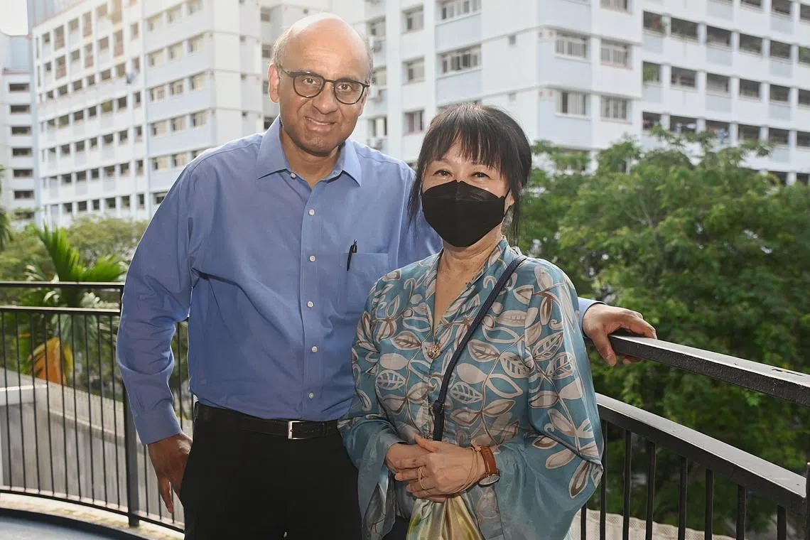 Senior Minister Tharman Shanmugaratnam and his wife, Ms Jane Yumiko Ittogi, at the media doorstop event on Thursday.