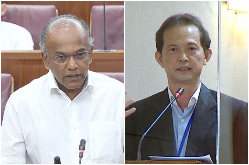 Law and Home Affairs Minister K. Shanmugam (left) and Non-Constituency MP Leong Mun Wai.