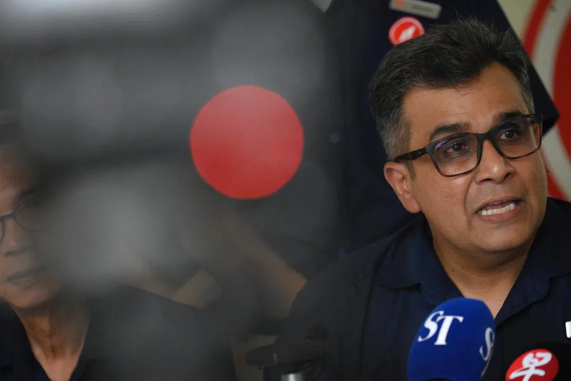 Red Dot United secretary-general Ravi Philemon speaking to the media on April 18.