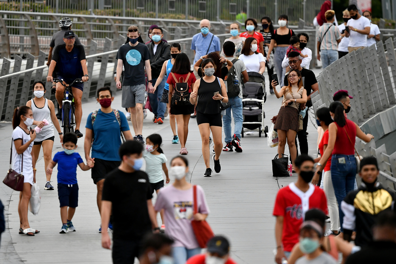 People walking and cycling at the Jubilee bridge on Aug 8, 2021.