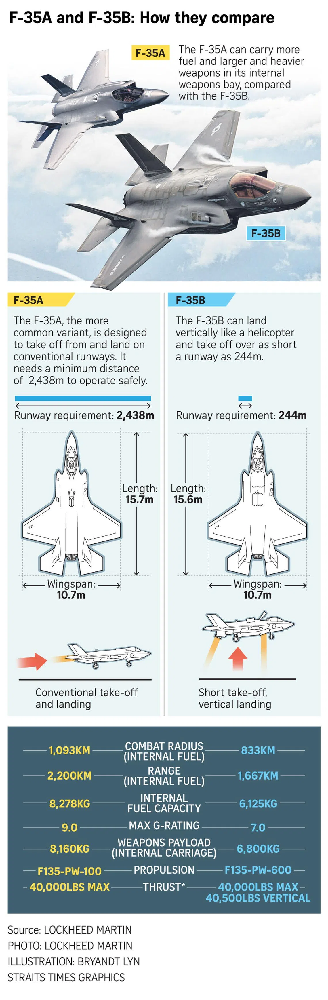 “They complement the F-35Bs’ short take-off and vertical landing capability... which provides more operational flexibility (in land-scarce Singapore).”