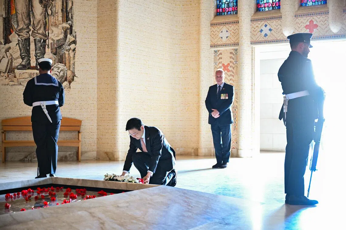 Prime Minister Lawrence Wong laying a wreath at the Australian War Memorial in Canberra on Oct 8.