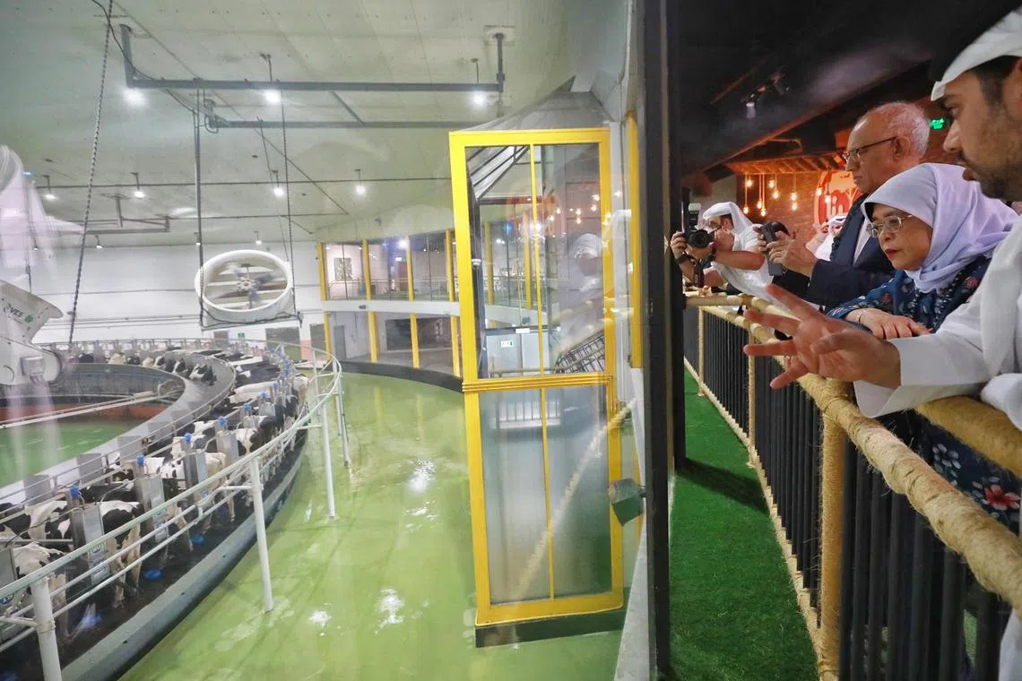 President Halimah Yacob (second from right) visited the 2.6 million sq m Baladna Farm, one of the largest cattle farms in the region.