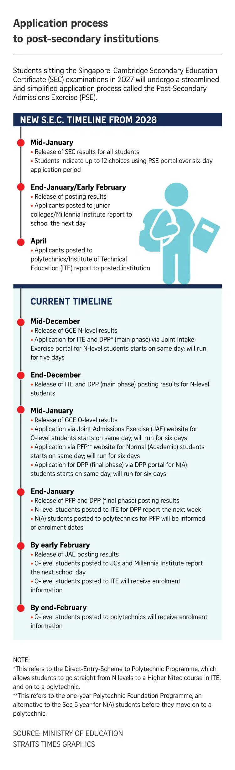SINGAPORE - Current Secondary 3 students will be the first to go through a simplified application exercise in early 2028, for admission into post-secondary institutions.