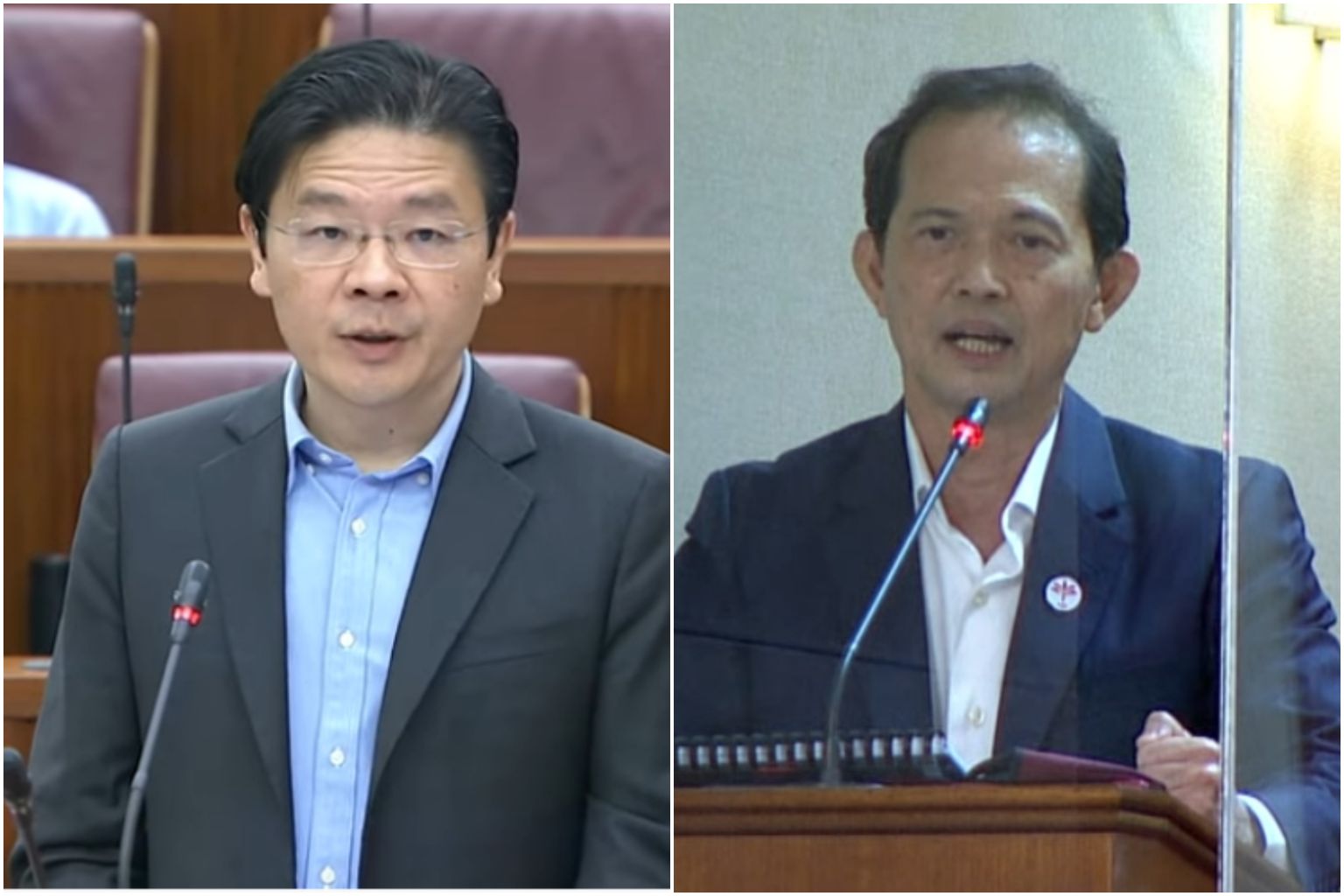 Finance Minister Lawrence Wong and PSP Non-Constituency MP Leong Mun Wai in Parliament on Sept 14, 2021.