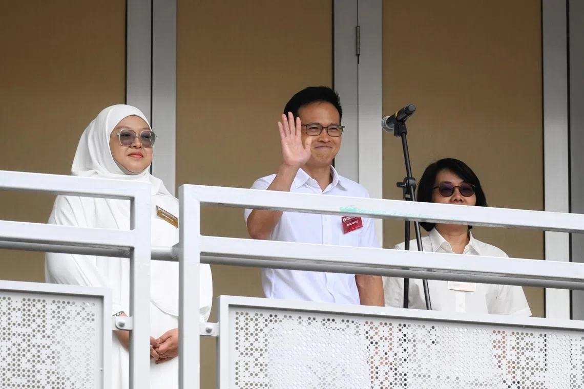 “Our good connection with one another, between communities... is why we have delivered Our Tampines Hub, Tampines Eco Town, and we will deliver even more,” he said to cheers, before leading supporters in cheers of “Tampines together”.