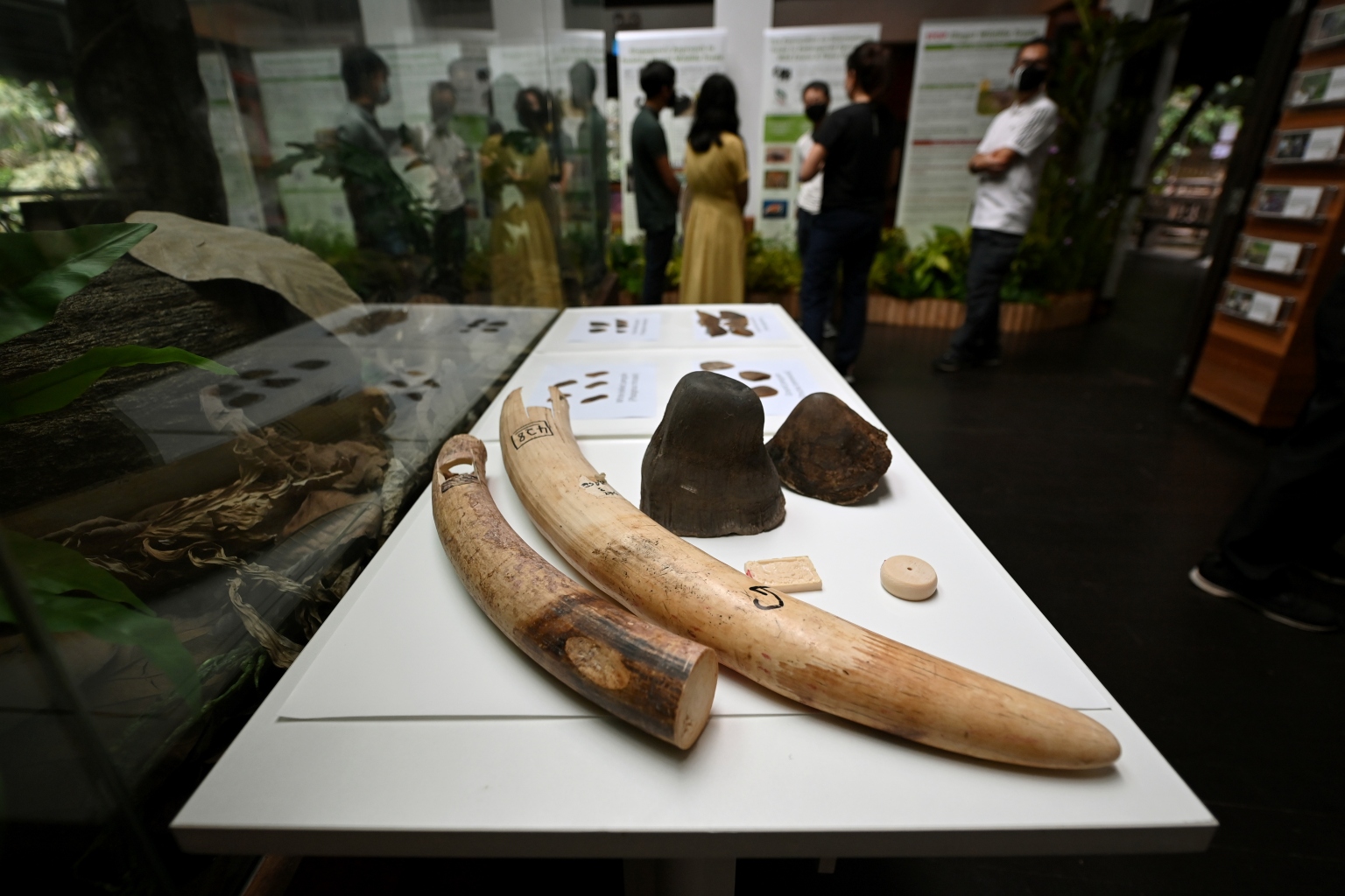Elephant tusks, pangolin scales and rhinoceros horns on at the Bukit Timah Nature Reserve Visitor Centre gallery last year.