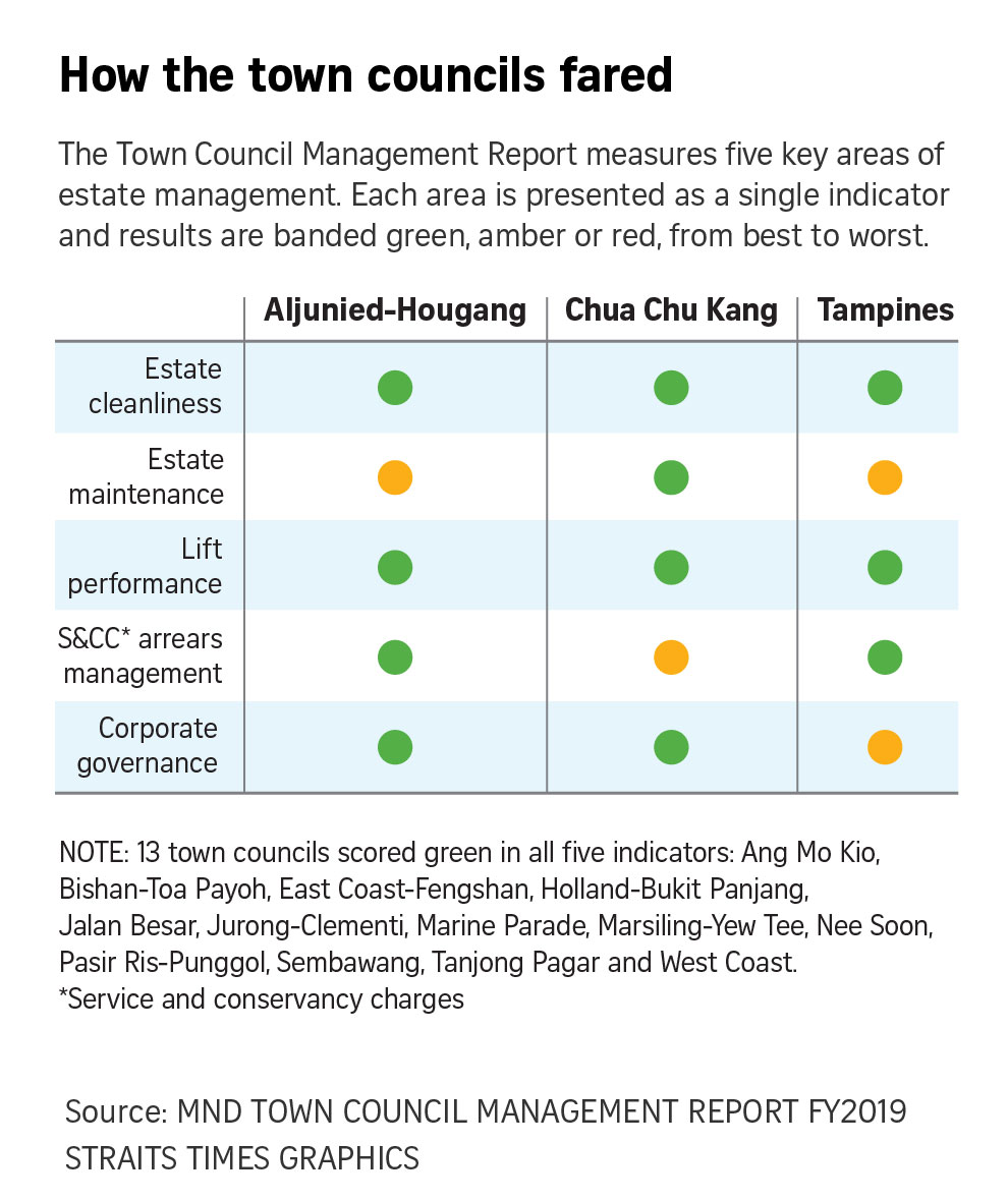 The three were the only town councils that received amber ratings in the latest Town Council Management Report (TCMR), for the 2019 financial year that ended on March 31, 2020, released on Monday (Mar 15).