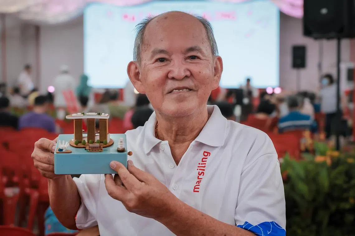 Mr Koh Soon Yong, 76, who is retired, brought along a gift – a model of Marina Bay – that Prime Minister Lawrence Wong presented to him in appreciation of his service about 10 years ago.