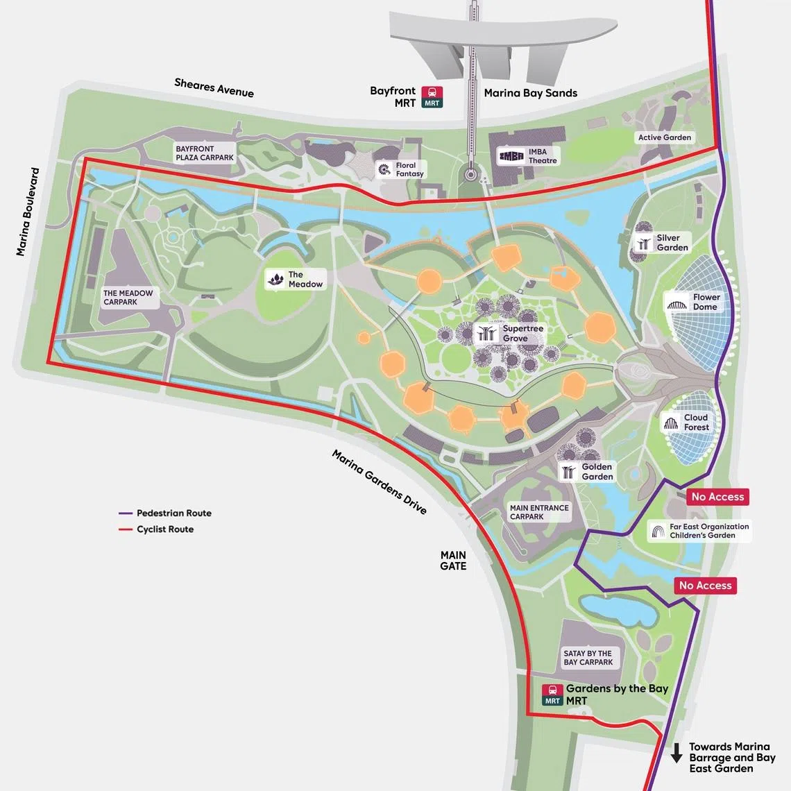 It added that works on the bridge will affect pedestrians and cyclists travelling to and from Marina Barrage, and that route diversions will take effect when construction starts in the second quarter of 2026, with cyclists expected to travel along the perimeter of Bay South Garden to get between Marina Bay Sands and Marina Barrage.