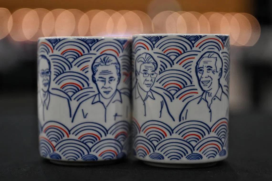 The porcelain cup bears an illustration of the four PAP prime ministers – Lee Kuan Yew, Goh Chok Tong, SM Lee and PM Wong.
