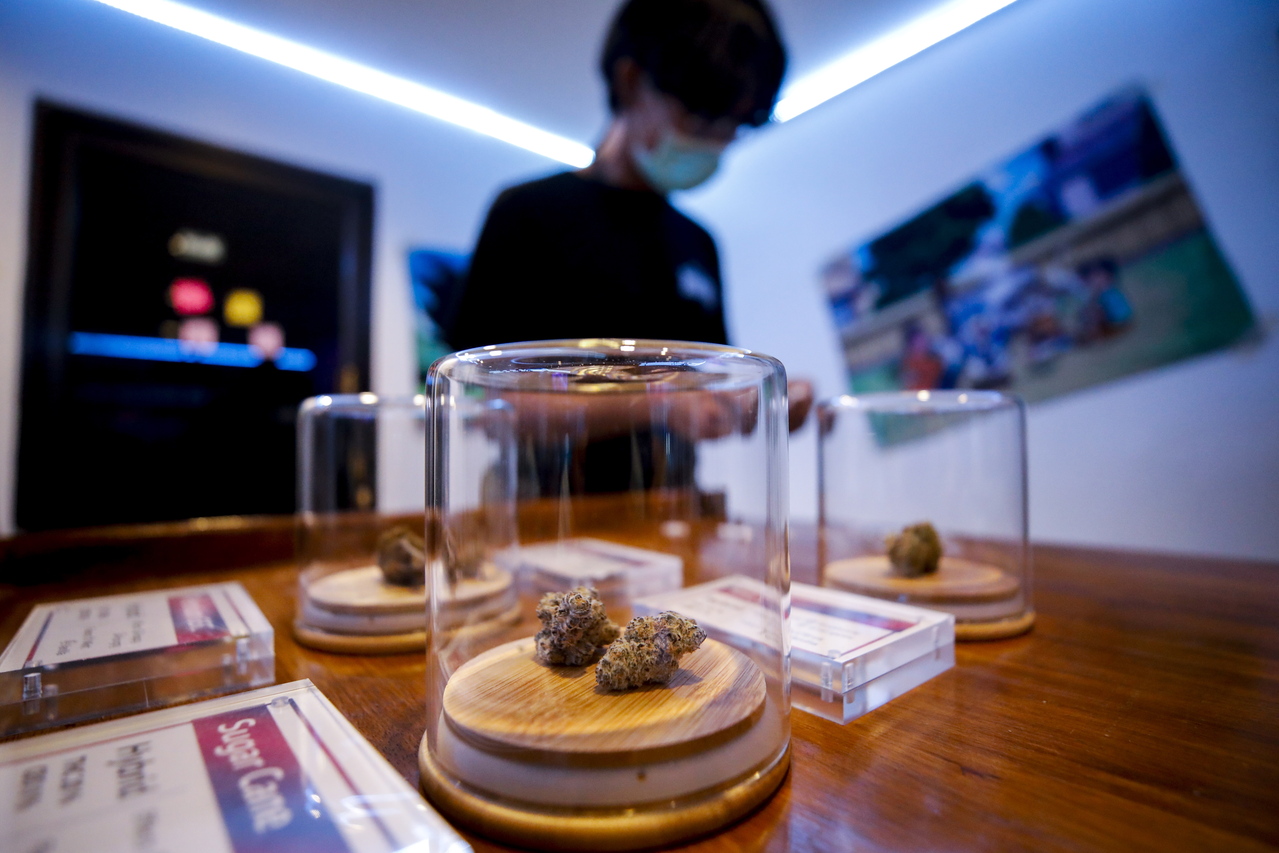Cannabis for sale is displayed at a cafe in Bangkok on Sept 12, 2022.